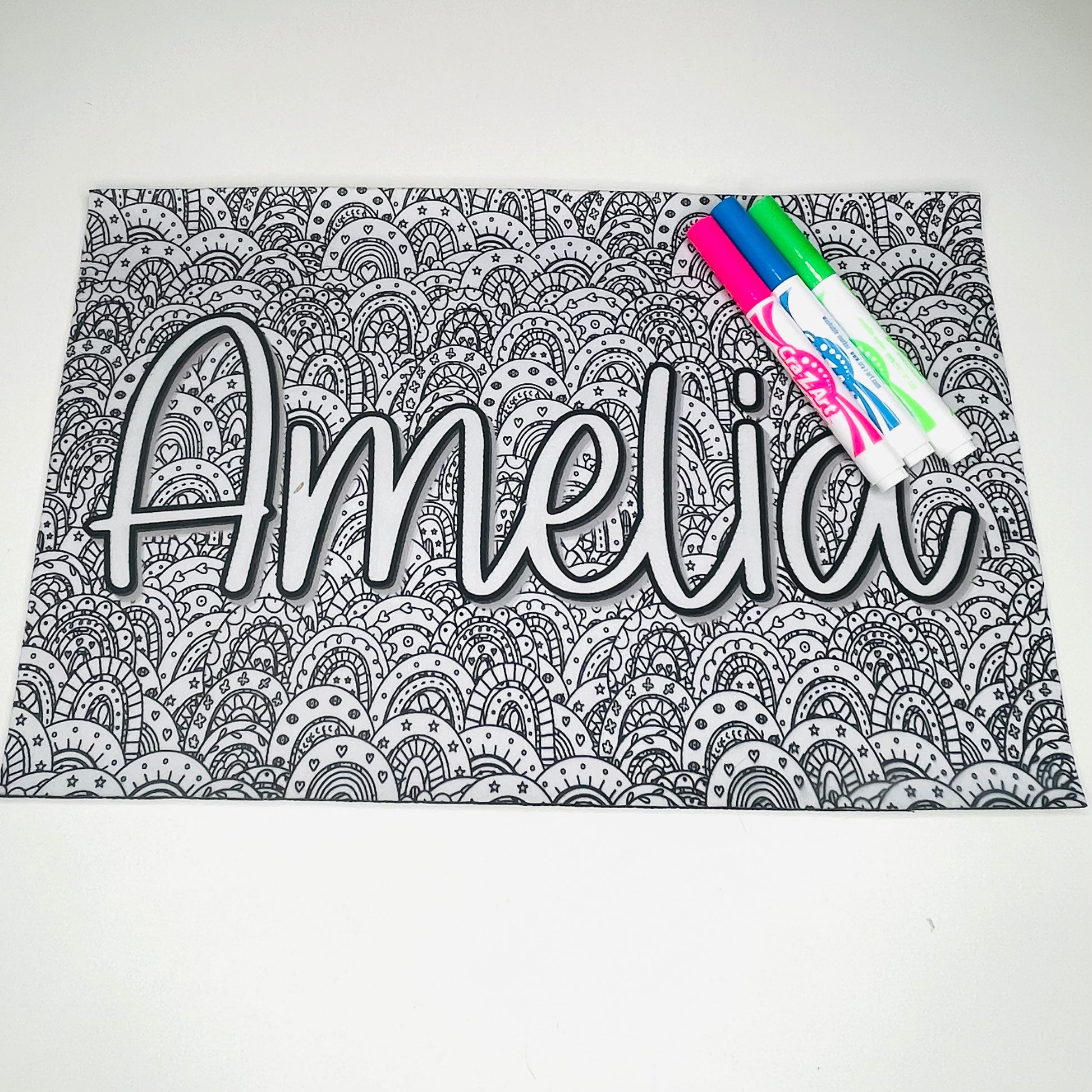 Personalized Coloring Name Placemat - Busy Rainbows