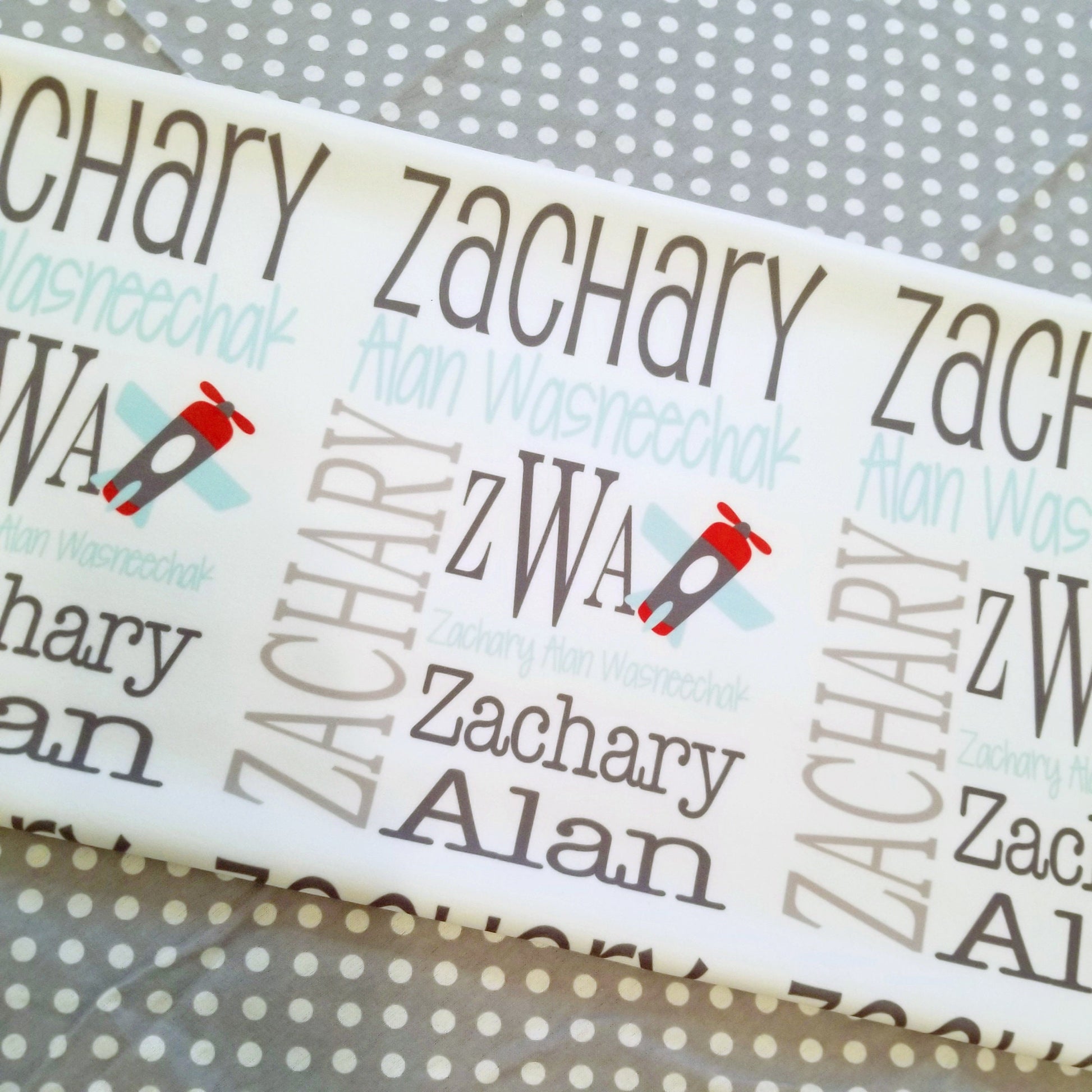 Personalized Baby Name Blanket - Block Monogram with Airplane